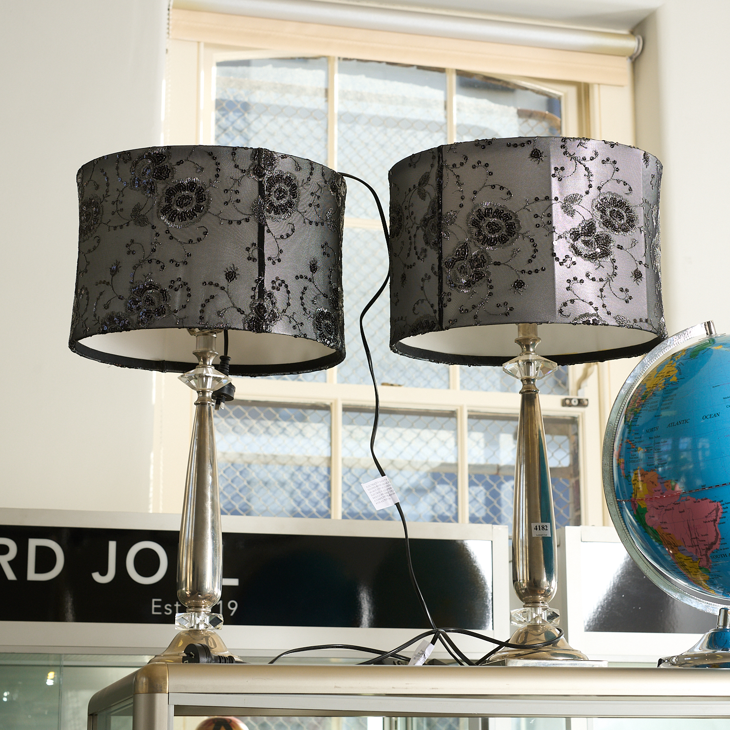 TWO CONTEMPORARY TABLE LAMPS WITH LACE SHADES H.66CM, LEONARD JOEL LOCAL DELIVERY SIZE: MEDIUM