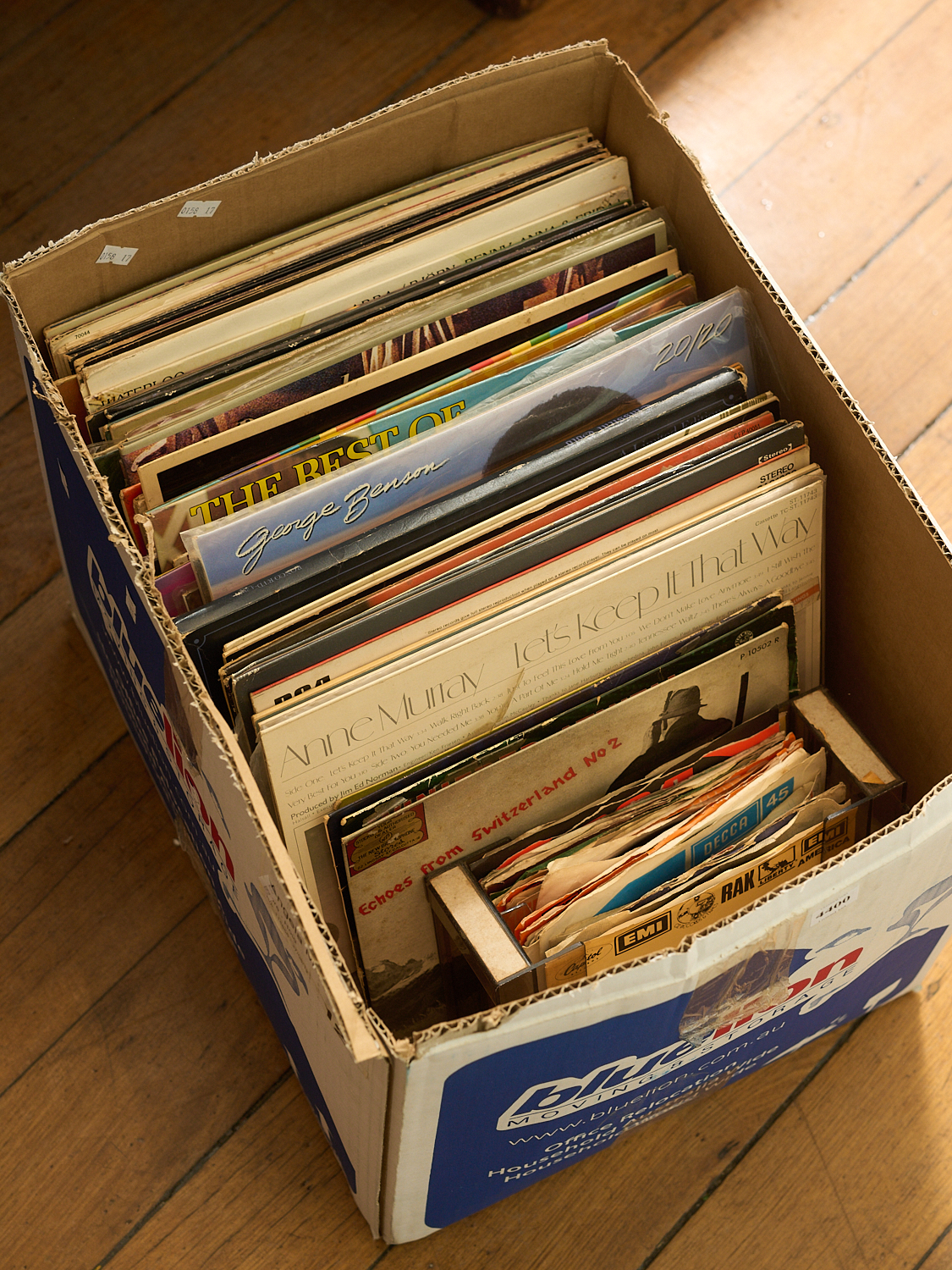 A BOX OF ASSORTED RECORDS INCLUDING ABBA, SOUNDTRACKS ETC, LEONARD JOEL LOCAL DELIVERY SIZE: MEDIUM