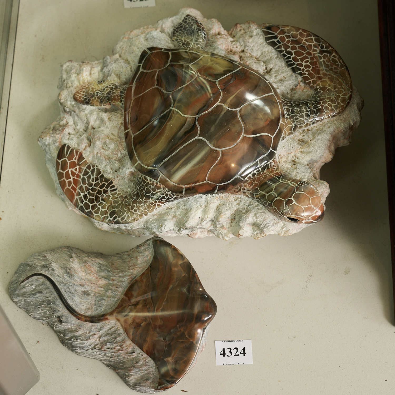 TWO CARVED MARBLE SEA CREATURES W.24CM (LARGEST), LEONARD JOEL LOCAL DELIVERY SIZE: MEDIUM