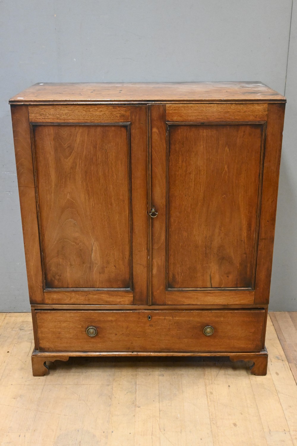 A GEORGIAN TWO DOOR CABINET (A/F) (H130 X W109 X D56 CM) (PLEASE NOTE THIS HEAVY ITEM MUST BE REMOVED BY CARRIERS AT THE CUSTOMER'S EXPENSE. LEONARD JOEL STAFF CANNOT ASSIST CARRYING THIS ITEM) (X-LARGE ITEM)
