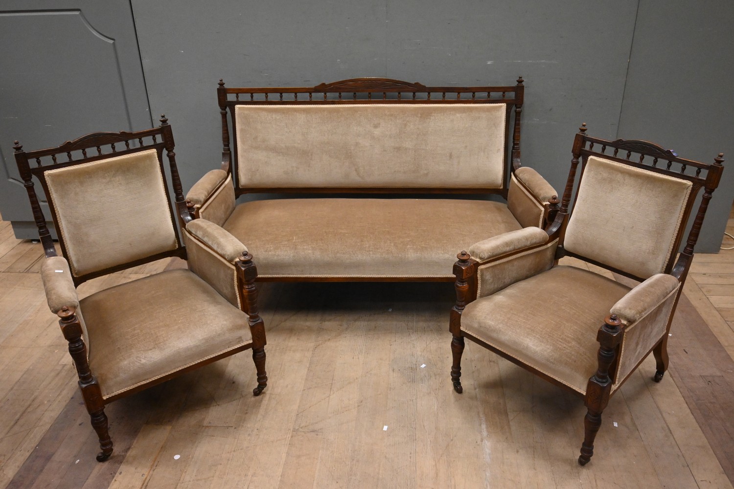 AN EDWARDIAN THREE PIECE SETTING ( 93H X 150W X 72D CM) (PLEASE NOTE THIS HEAVY ITEM MUST BE REMOVED BY CARRIERS AT THE CUSTOMER'S EXPENSE. LEONARD JOEL STAFF CANNOT ASSIST CARRYING THIS ITEM) (X-LARGE ITEM)