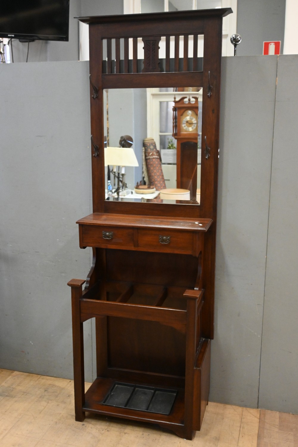 A SUBSTANTIAL BLACKWOOD EDWARDIAN MIRRORBACK HALL STAND (232H x 88W x 41D CM) (PLEASE NOTE THIS HEAVY ITEM MUST BE REMOVED BY CARRIERS AT THE CUSTOMER'S EXPENSE. LEONARD JOEL STAFF CANNOT ASSIST CARRYING THIS ITEM) (X-LARGE ITEM)