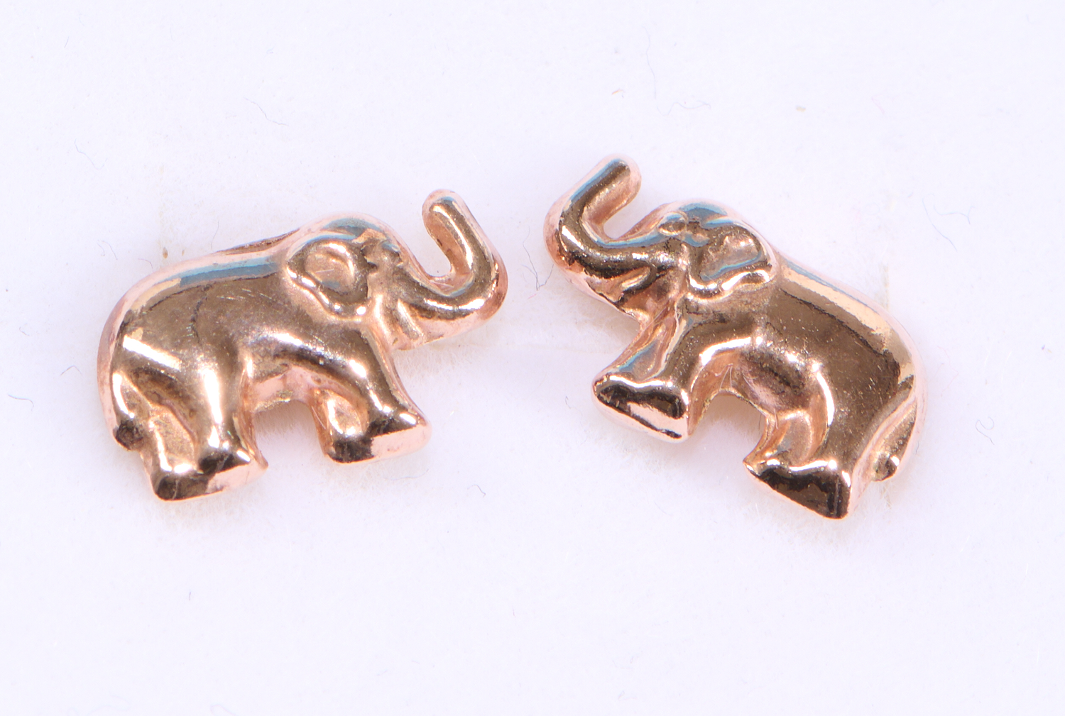 A PAIR OF GOLD PLATED STERLING SILVER STUDS DEPICTING ELEPHANTS, TO POST FITTINGS, BOXED