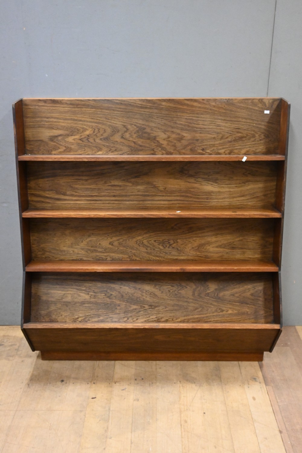 A SUPER 1950S RETRO 4 SHELF AUSTRALIAN HARDWOOD BOOK SHELF (A/F) (H130 X W122 X D46 CM) (LEONARD JOEL DELIVERY SIZE: LARGE)