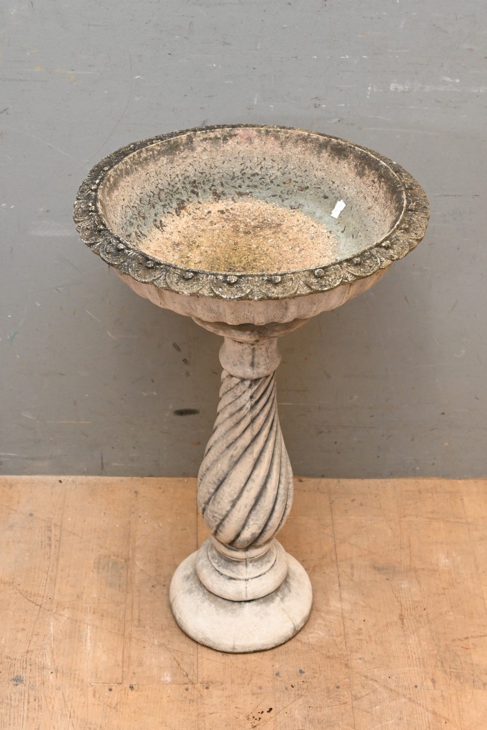 A FRENCH RECONSTITUTED STONE 2 PIECE BIRD BATH (A/F) (68H x 44D CM) (LEONARD JOEL DELIVERY SIZE: LARGE)