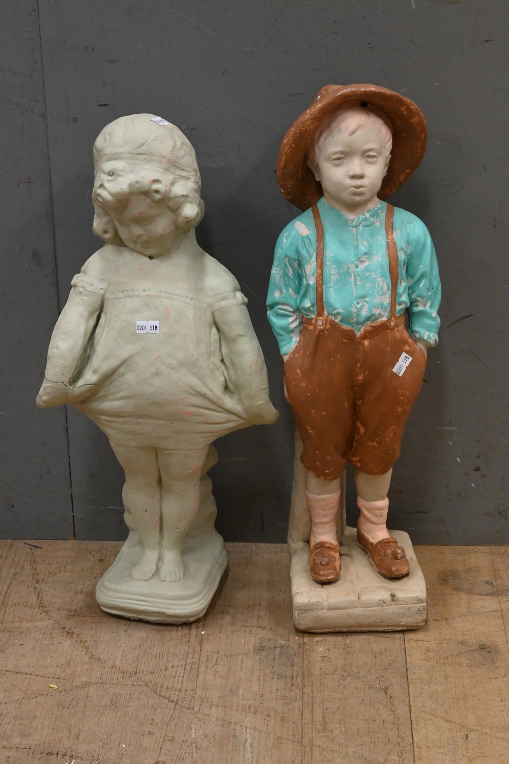 TWO CONCRETE PAINTED GARDEN FIGURES - ONE BOY AND ONE GIRL ( 58H CM) (LEONARD JOEL DELIVERY SIZE: LARGE)
