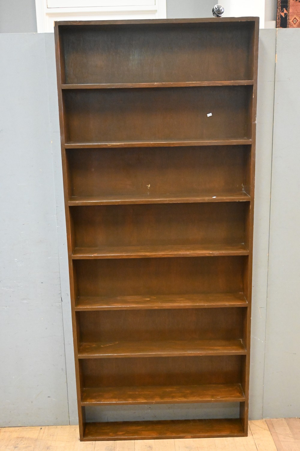 A LARGE 1950S EIGHT SHELF AUSTRALIAN MADE PINE BOOKSHELF (213H x 91W x 14D CM) (PLEASE NOTE THIS HEAVY ITEM MUST BE REMOVED BY CARRIERS AT THE CUSTOMER'S EXPENSE. LEONARD JOEL STAFF CANNOT ASSIST CARRYING THIS ITEM) (X-LARGE ITEM)