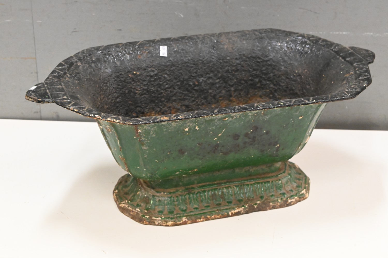 A FRENCH CAST IRON FLUTED PLANTER WITH REMNANTS OF GREEN PAINT (23H x 61W x 33D CM) (LEONARD JOEL DELIVERY SIZE: MEDIUM)