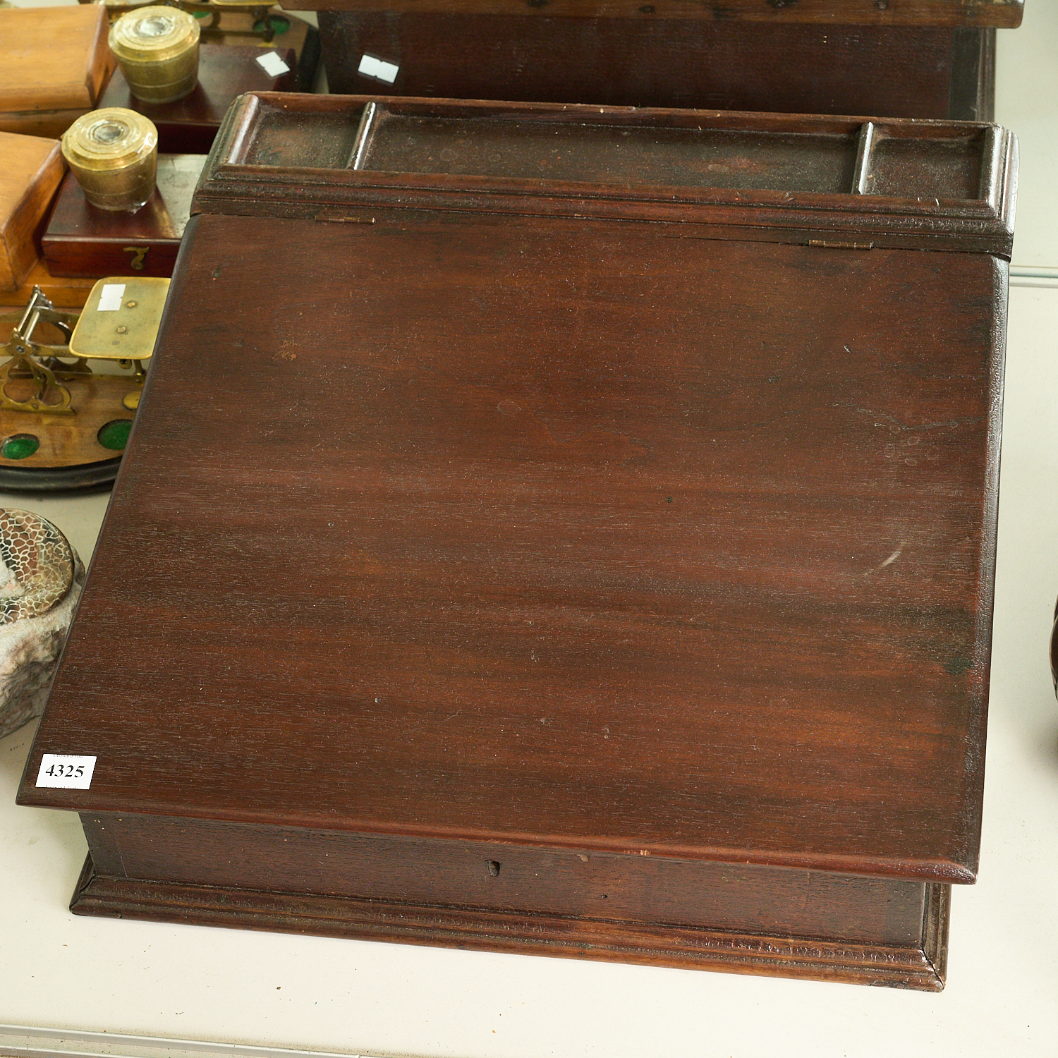 A 19TH C AUSTRALIAN CEDAR DESK TOP WRITING SLOPE WITH INKWELL SECTIONS H.15CM X W.43.5CM X D.45.5CM, LEONARD JOEL LOCAL DELIVERY SIZE: MEDIUM