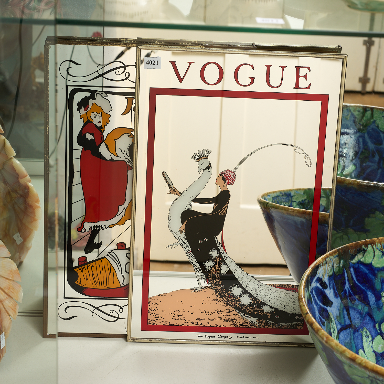 TWO ADVERTISING MIRRORS INCLUDING JANE AVRIL JARDIN DE PARIS AND VOGUE (A/F TO ONE) H.46CM X W.30CM, LEONARD JOEL LOCAL DELIVERY SIZE: MEDIUM