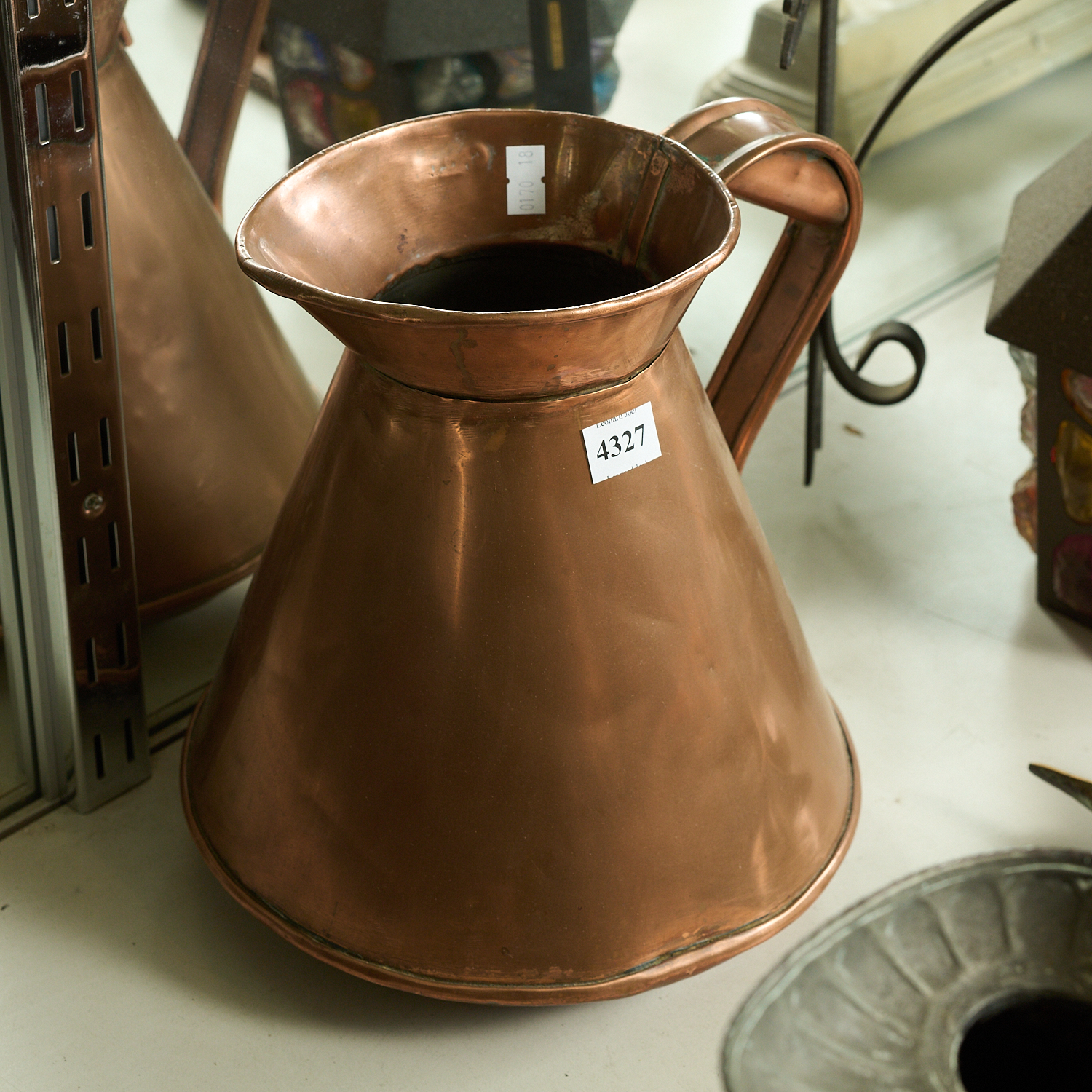 A VICTORIAN STAMPED GALLON COPPER JUG H.35CM, LEONARD JOEL LOCAL DELIVERY SIZE: MEDIUM