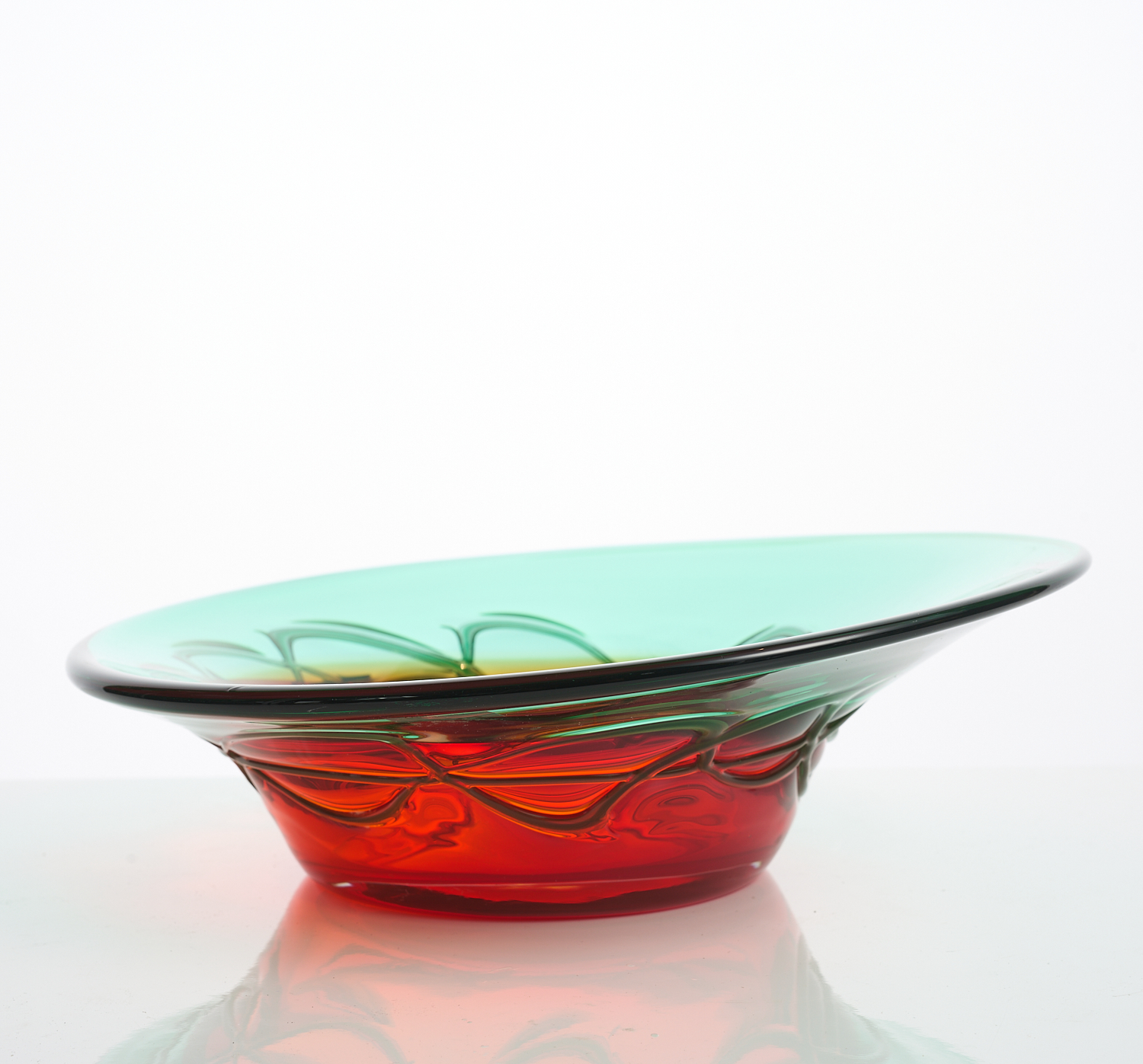 A RETRO RED AND GREEN GLASS BOWL DIA.29CM, LEONARD JOEL LOCAL DELIVERY SIZE: MEDIUM