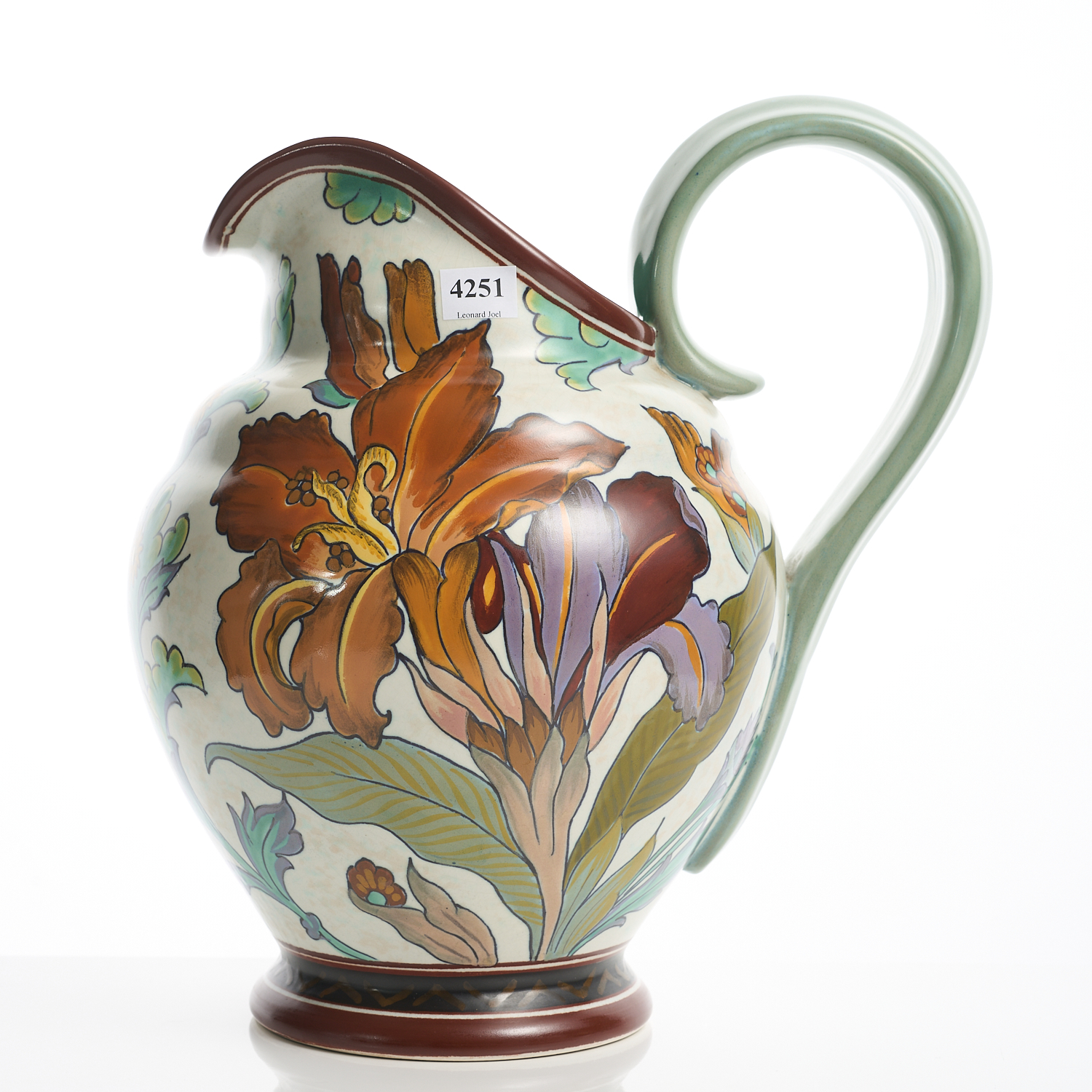A GOUDA ROGAMA FLORAL PAINTED JUG H.31CM, LEONARD JOEL LOCAL DELIVERY SIZE: MEDIUM