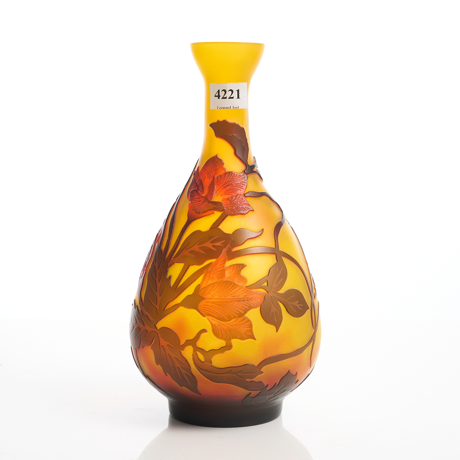 A GALLE STYLE GLASS VASE H.24.5CM, LEONARD JOEL LOCAL DELIVERY SIZE: SMALL