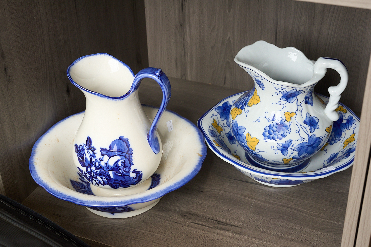 TWO WATER JUGS WITH MATCHING BASINS (A/F), LEONARD JOEL LOCAL DELIVERY SIZE: MEDIUM