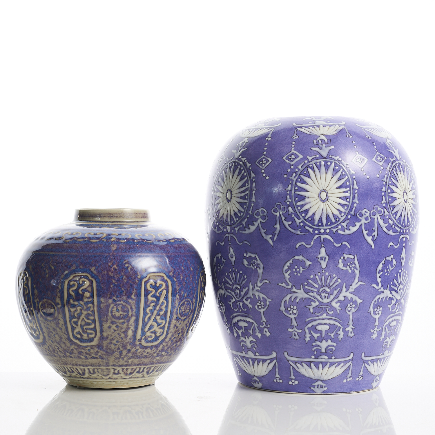 A NANJING ROAD POTTERY VASE TOGTEHR WITH ONE OTHER H.30CM, LEONARD JOEL LOCAL DELIVERY SIZE: MEDIUM