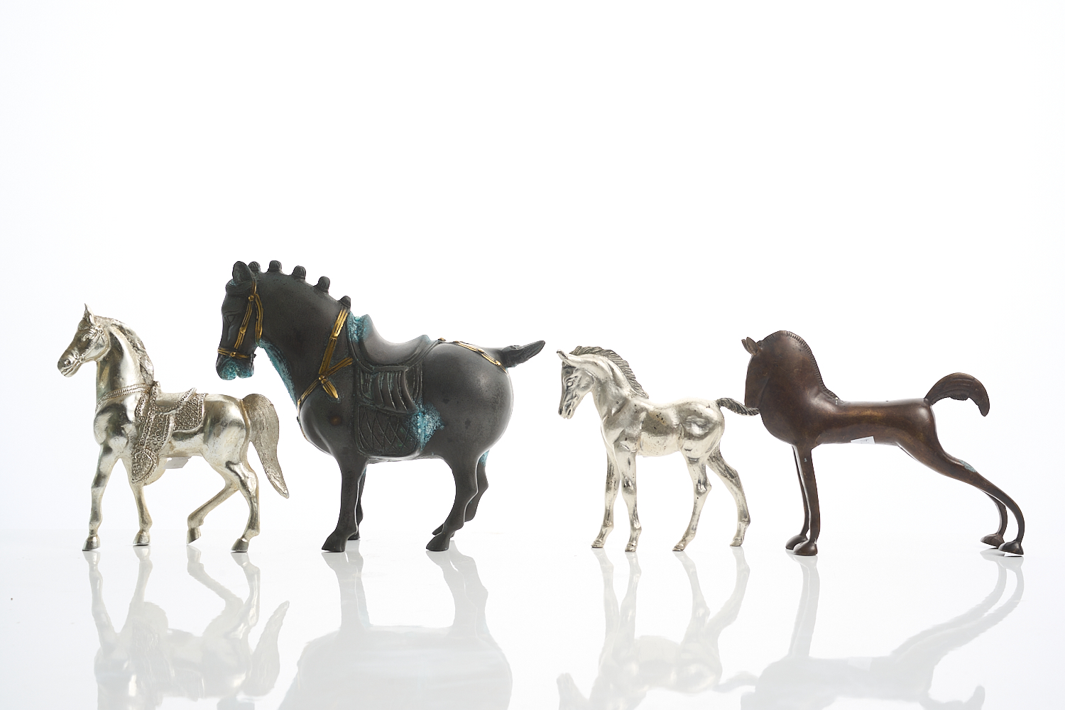 FOUR CAST METAL HORSES, LEONARD JOEL LOCAL DELIVERY SIZE: SMALL