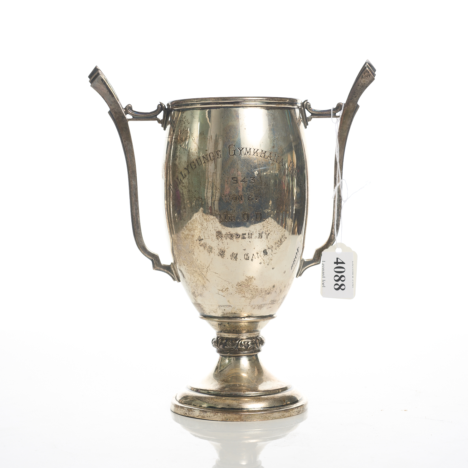 AN ANGLO INDIAN SILVER HORSERACING TROPHY WITH HALLMARKS FOR COOKE AND KELVEY, 322 GRAMS H.19CM, LEONARD JOEL LOCAL DELIVERY SIZE: SMALL