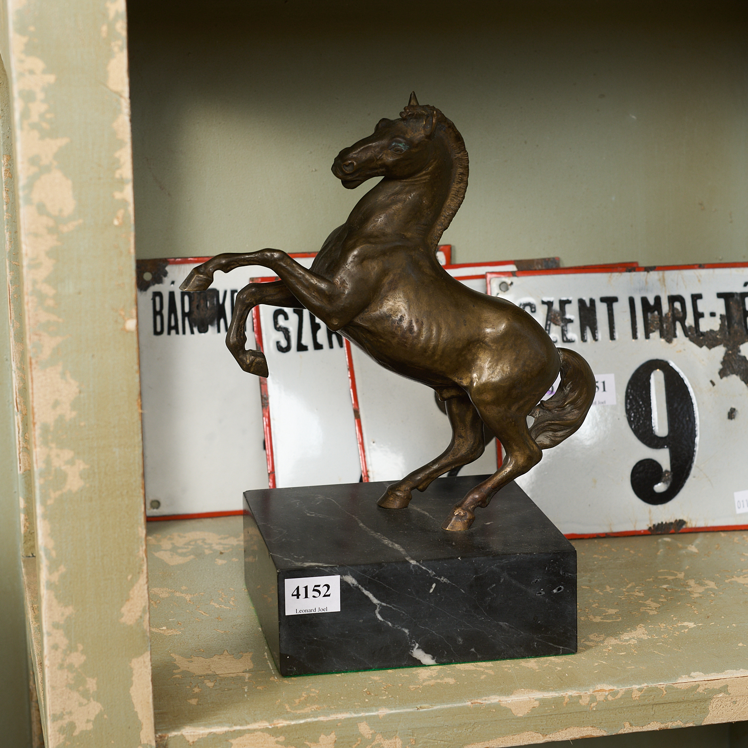 A BRONZE HORSE ON MARBLE BASE H.26CM, LEONARD JOEL LOCAL DELIVERY SIZE: SMALL