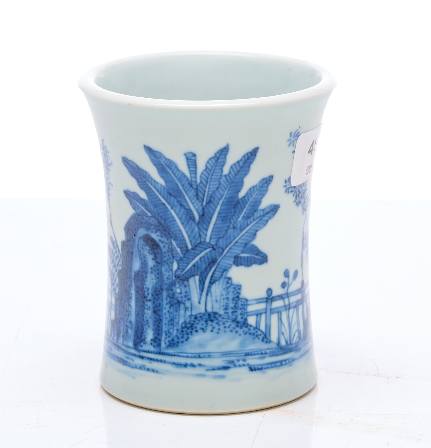 A CHINESE BLUE AND WHITE TRANSITIONAL TYPE BRUSH POT, LEONARD JOEL LOCAL DELIVERY SIZE: SMALL