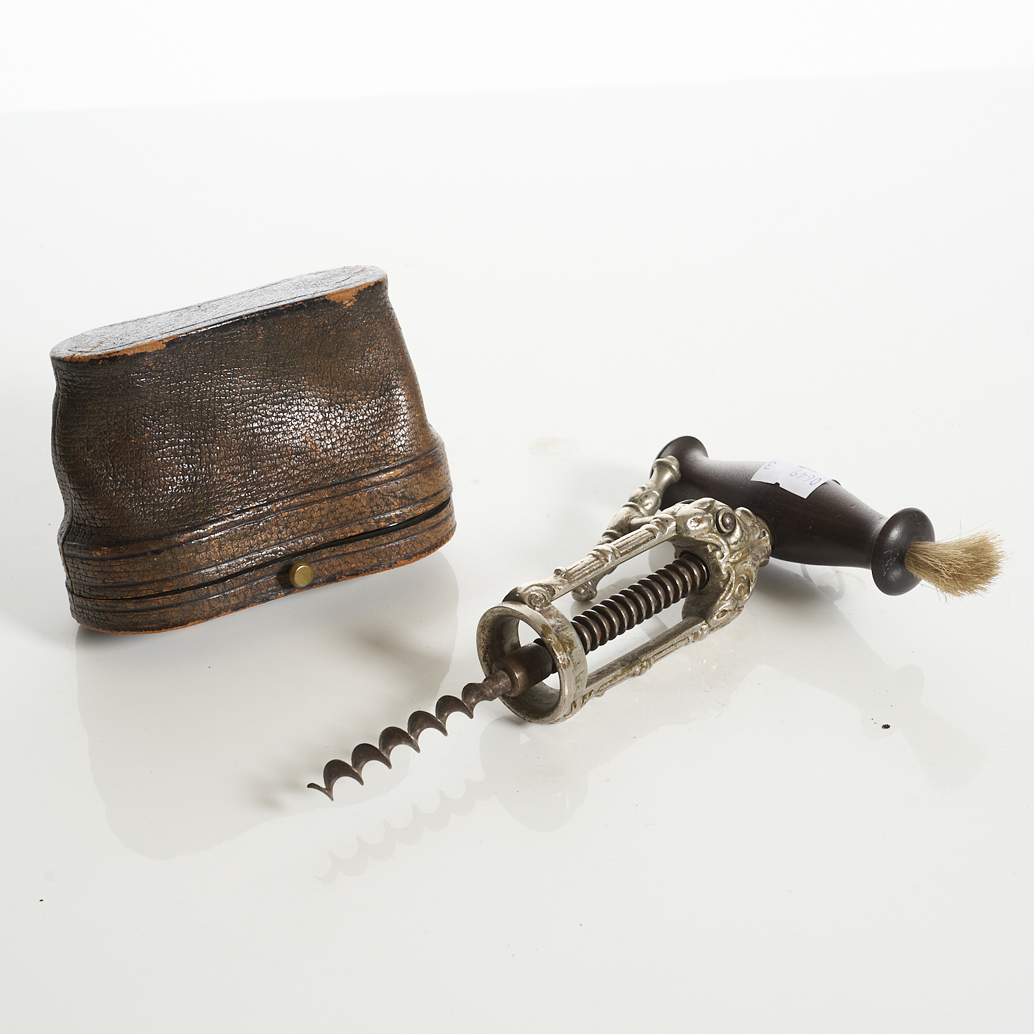 AN ANTIQUE CORK SCREW AND A PAIR OF OPERA GLASSES, LEONARD JOEL LOCAL DELIVERY SIZE: SMALL