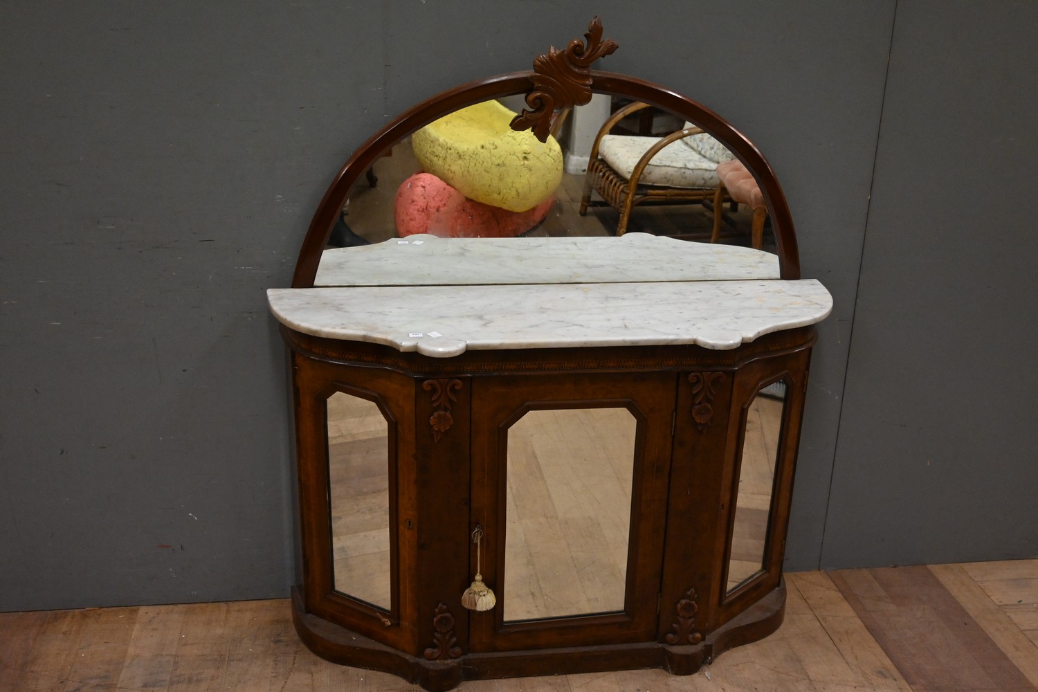 A VICTORIAN BURR WALNUT AND INLAID MIRRORBACK CREDENZA (A/F) (123H x 124W x 42D CM) (PLEASE NOTE THIS HEAVY ITEM MUST BE REMOVED BY CARRIERS AT THE CUSTOMER'S EXPENSE. LEONARD JOEL STAFF CANNOT ASSIST CARRYING THIS ITEM) (X-LARGE ITEM)