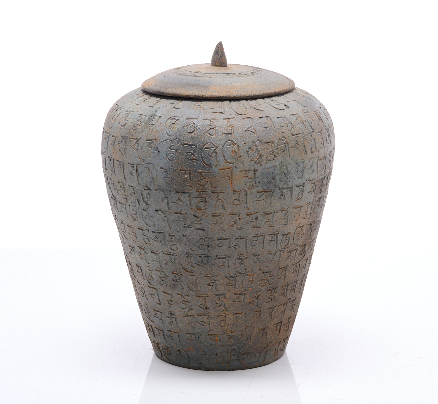 A CHINESE YUNNAN-TYPE POTTERY RELIQUARY WITH SANSKRIT INSCRIPTION, LEONARD JOEL LOCAL DELIVERY SIZE: SMALL
