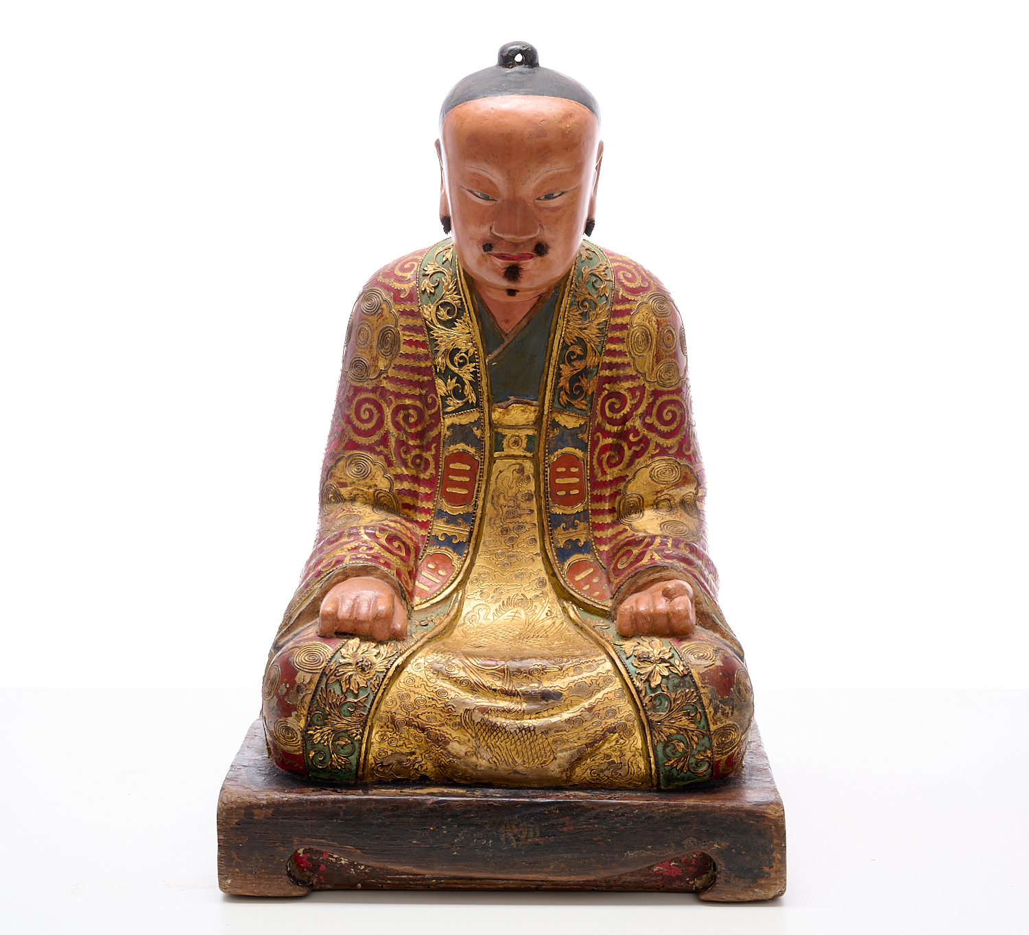 A CHINESE CARVED WOODEN TAOIST GOD FIGURE, MING OR EARLY QING DYNASTY, LEONARD JOEL LOCAL DELIVERY SIZE: MEDIUM
