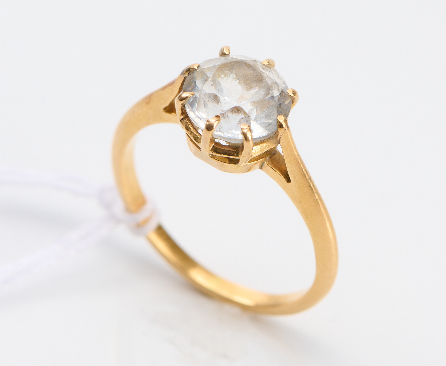 A WHITE STONE SET RING IN 18CT GOLD, SIZE J-K, 2.75GMS