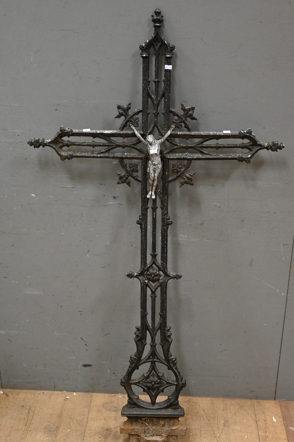 A SUPERB LARGE 19TH CENTURY FRENCH CAST IRON CRUCIFIX WITH FIGURE OF JESUS ( 150H X 83W CM) (PLEASE NOTE THIS HEAVY ITEM MUST BE REMOVED BY CARRIERS AT THE CUSTOMER'S EXPENSE. LEONARD JOEL STAFF CANNOT ASSIST CARRYING THIS ITEM) (X-LARGE ITEM)