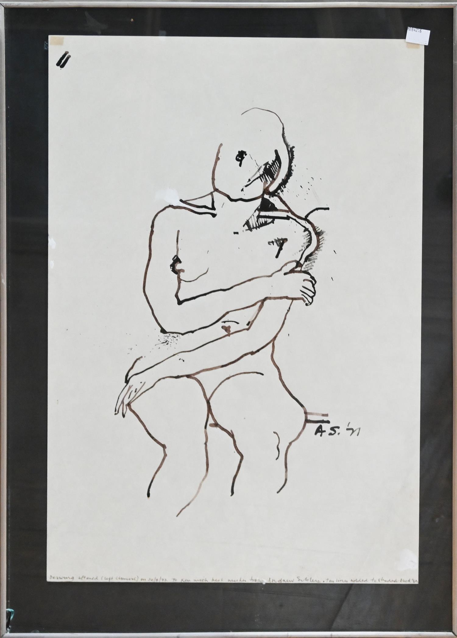 ANDREW SIBLEY, NUDE STUDY 1971, INK ON PAPER, 56 X 38CM