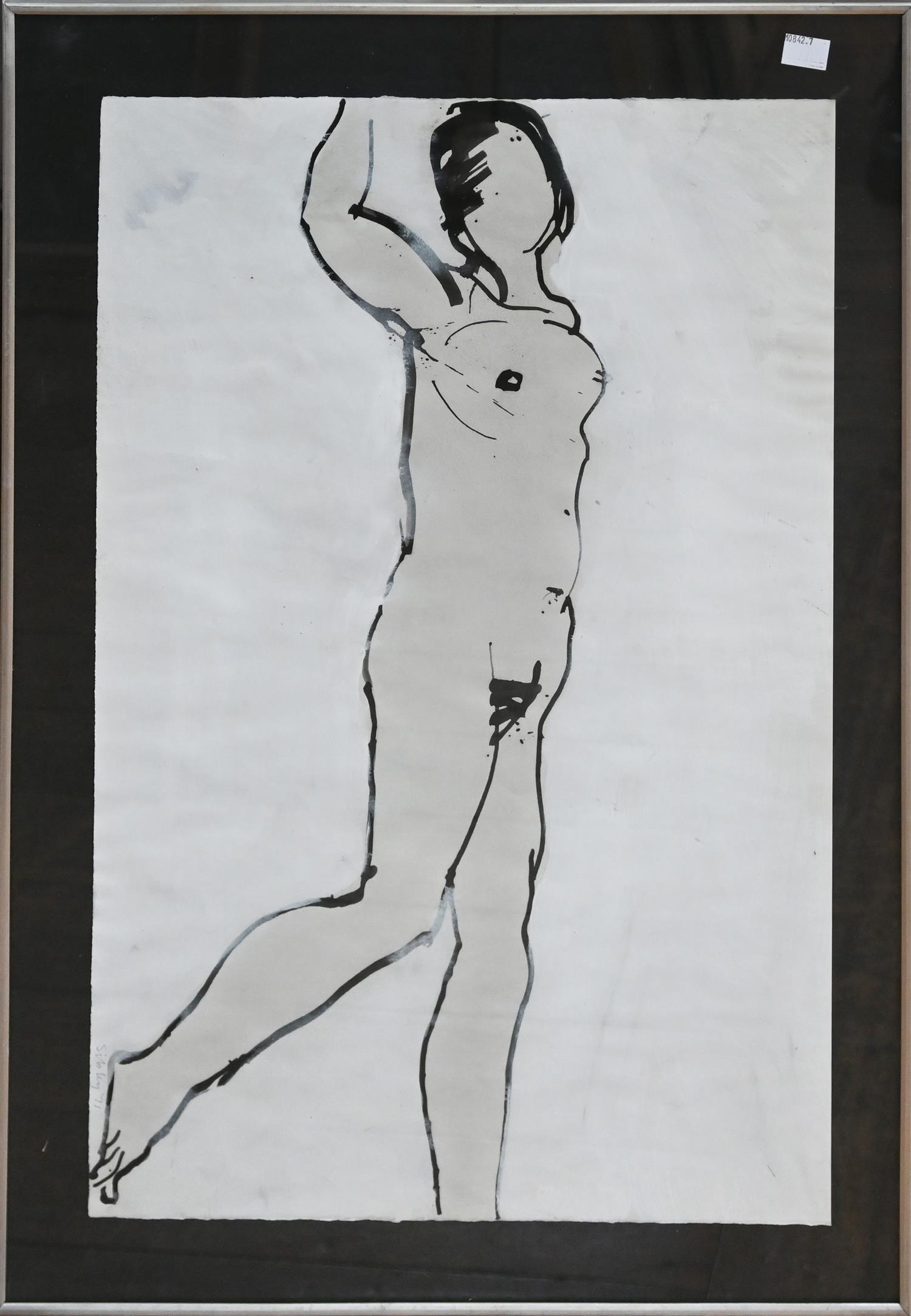 ANDREW SIBLEY, RECLINING NUDE 1971, INK AND GOUACHE ON PAPER, 38 X 56CM