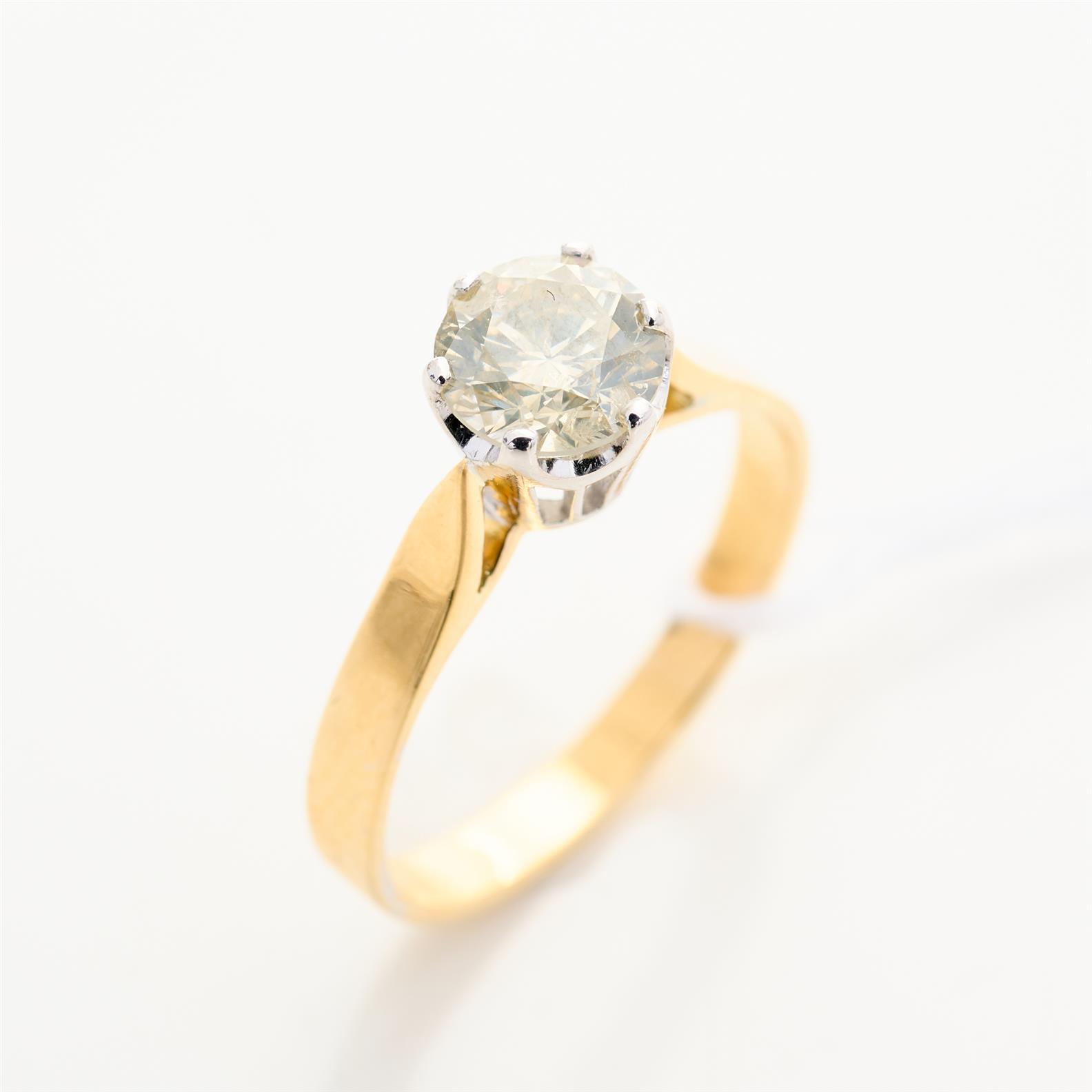 A SOLITAIRE DIAMOND RING IN TWO TONE 18CT GOLD, THE DIAMOND TOTALLING 1.01CTS, RING SIZE N/O
