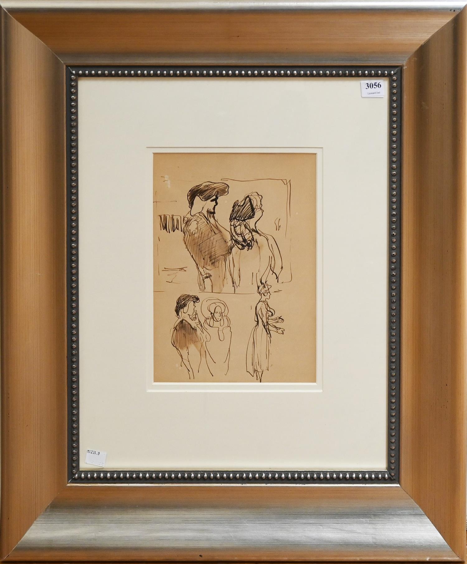 IN THE STYLE OF WILLIAM DOBELL, FIGURE STUDIES, INK ON PAPER, 25.5 X 19CM