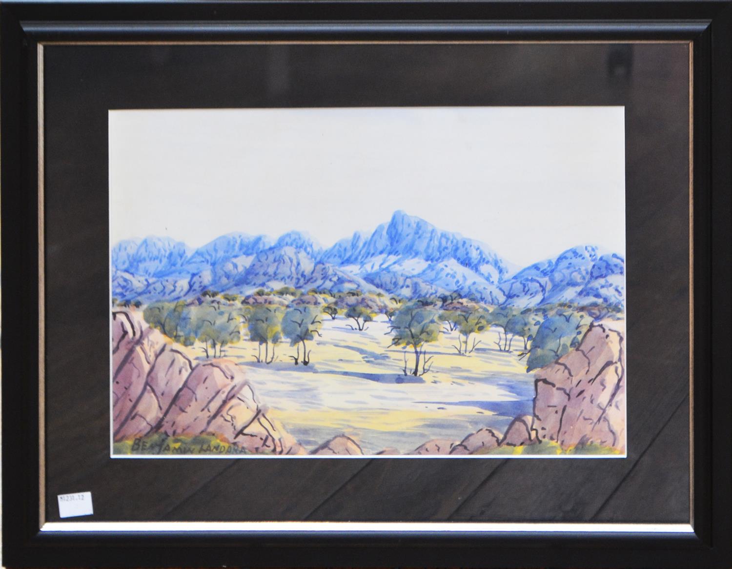 BENJAMIN LANDARA, CENTRAL AUSTRALIAN LANDSCAPE, WATERCOLOUR, 24 X 36CM