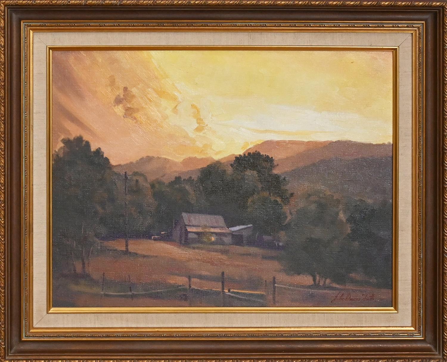 JOHN DUNCAN FIRTH, THE SUN'S LAST GLOW, OIL ON BOARD, 45 X 60CM