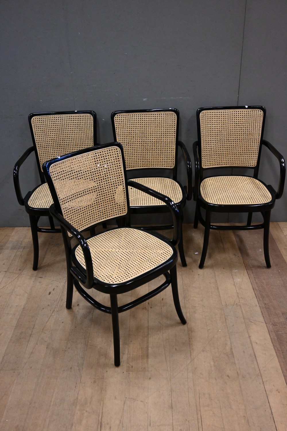 FOUR TEAK AND RATTAN DINING CHAIRS ( 92H X 56W X 60D CM) (LEONARD JOEL DELIVERY SIZE: LARGE)