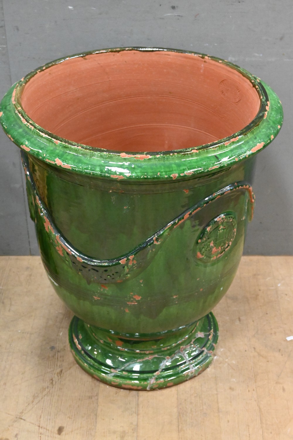 A LARGE FRENCH ANDUZE POT (A/F) (REPAIRS TO BASE) ( 78H X 67 DIAMETER CM) (PLEASE NOTE THIS HEAVY ITEM MUST BE REMOVED BY CARRIERS AT THE CUSTOMER'S EXPENSE. LEONARD JOEL STAFF CANNOT ASSIST CARRYING THIS ITEM) (X-LARGE ITEM)