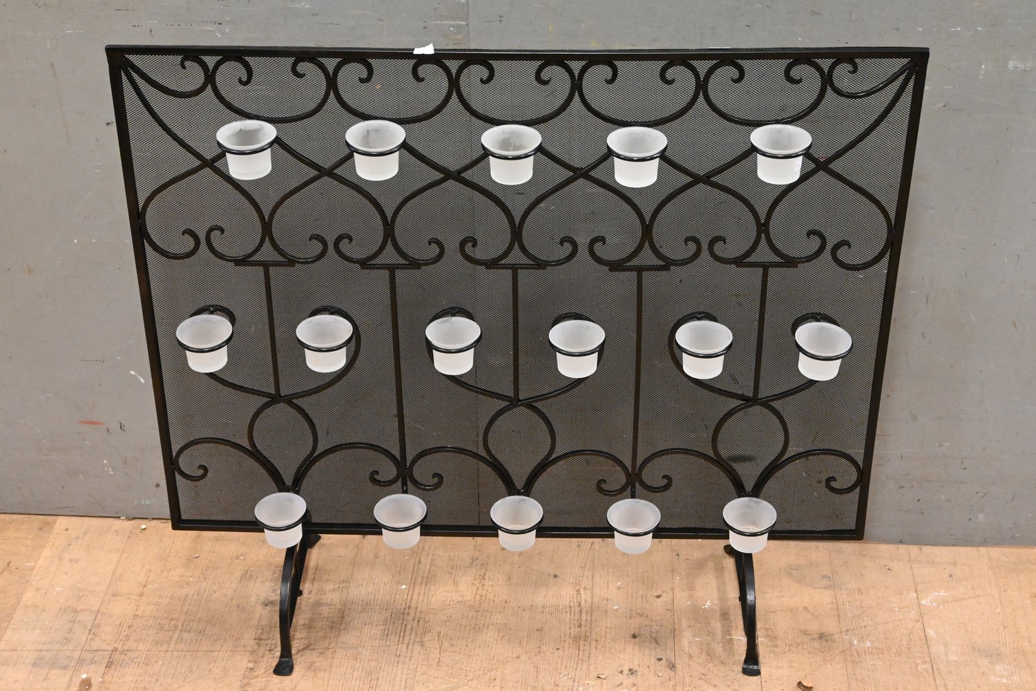 A WROUGHT IRON FIRESCREEN WITH 16 GLASS CANDLE HOLDERS (H80 X W88 CM) (LEONARD JOEL DELIVERY SIZE: LARGE)