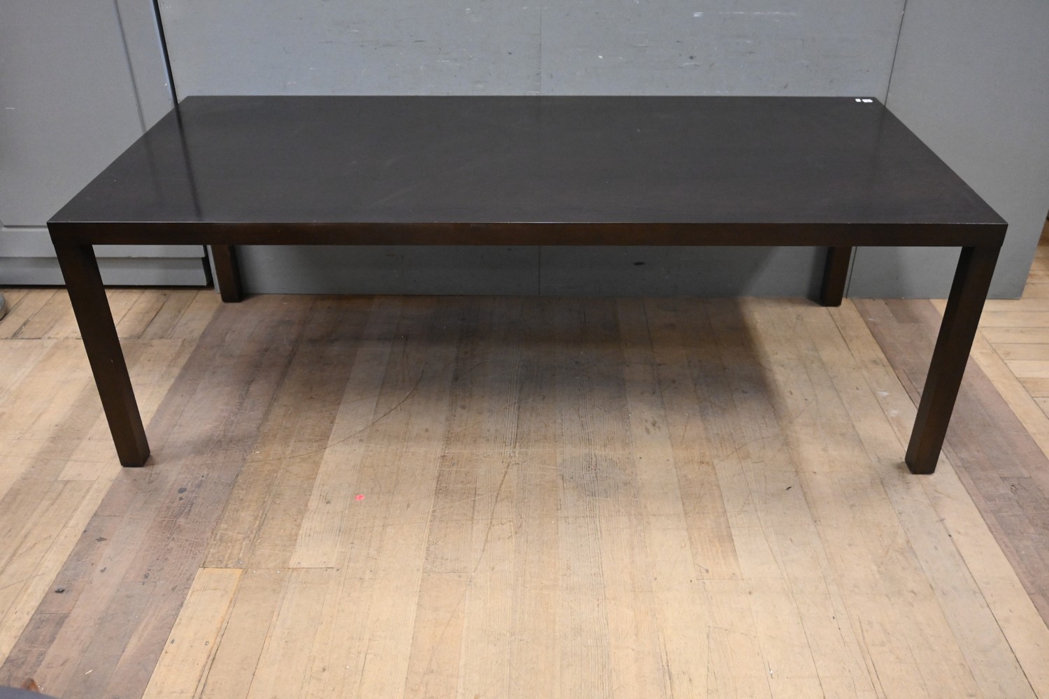 AN AMERICAN OAK VENEER DINING TABLE (A/F) (73H x 220W x 101D CM) (PLEASE NOTE THIS HEAVY ITEM MUST BE REMOVED BY CARRIERS AT THE CUSTOMER'S EXPENSE. LEONARD JOEL STAFF CANNOT ASSIST CARRYING THIS ITEM) (X-LARGE ITEM)