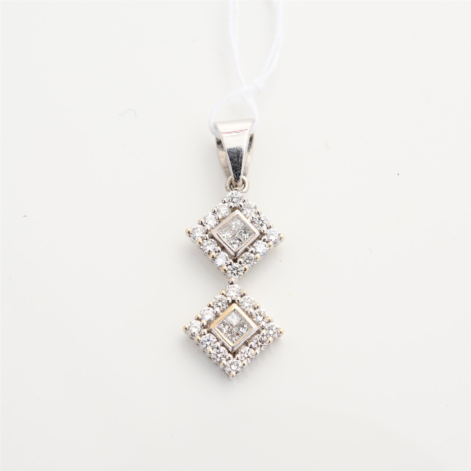 A DIAMOND PENDANT IN 18CT WHITE GOLD, LENGTH APPROXIMATELY 30MM, 3.17GMS