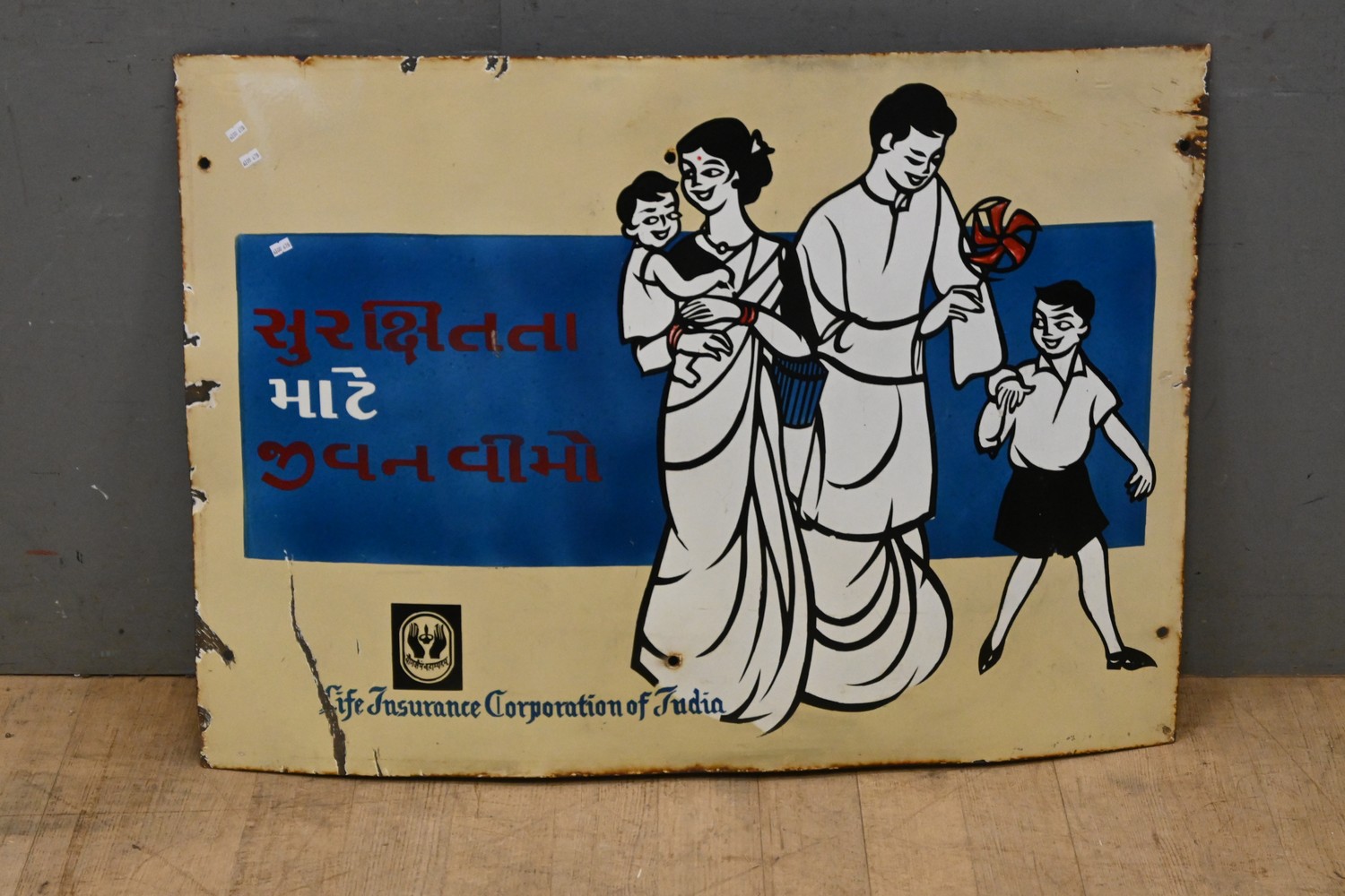 AN INDIAN LIFE INSURANCE CORPORATION ENAMEL SIGN (78H x 106W CM) (LEONARD JOEL DELIVERY SIZE: LARGE)