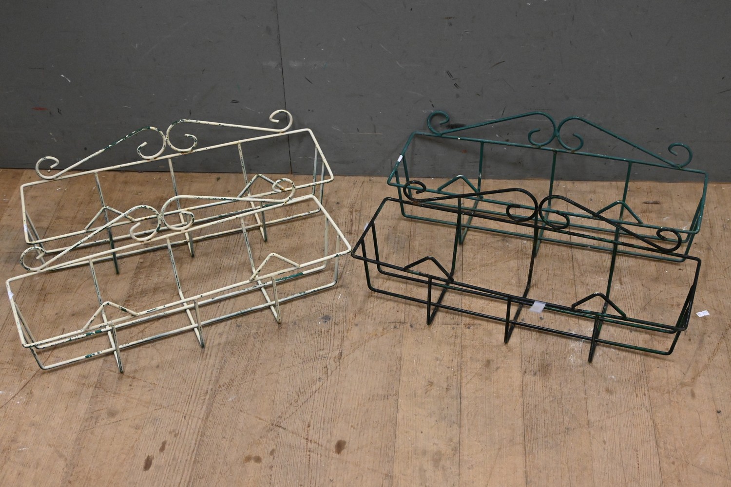A SET OF FOUR VINTAGE METAL HANGING PLANT BASKETS ( 20H X 60W X 20D CM) (LEONARD JOEL DELIVERY SIZE: MEDIUM)