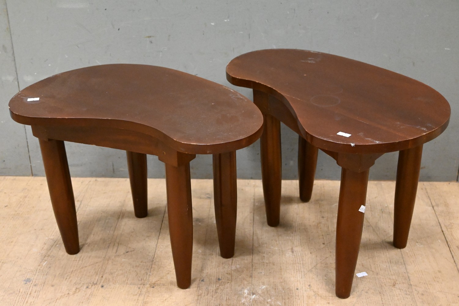 A PAIR OF MID CENTURY AUSTRALIAN PAINTED WOODEN KIDNEY SHAPED OCCASIONAL TABLES (A/F) ( 37H X 53W X 33D CM) (LEONARD JOEL DELIVERY SIZE: MEDIUM)