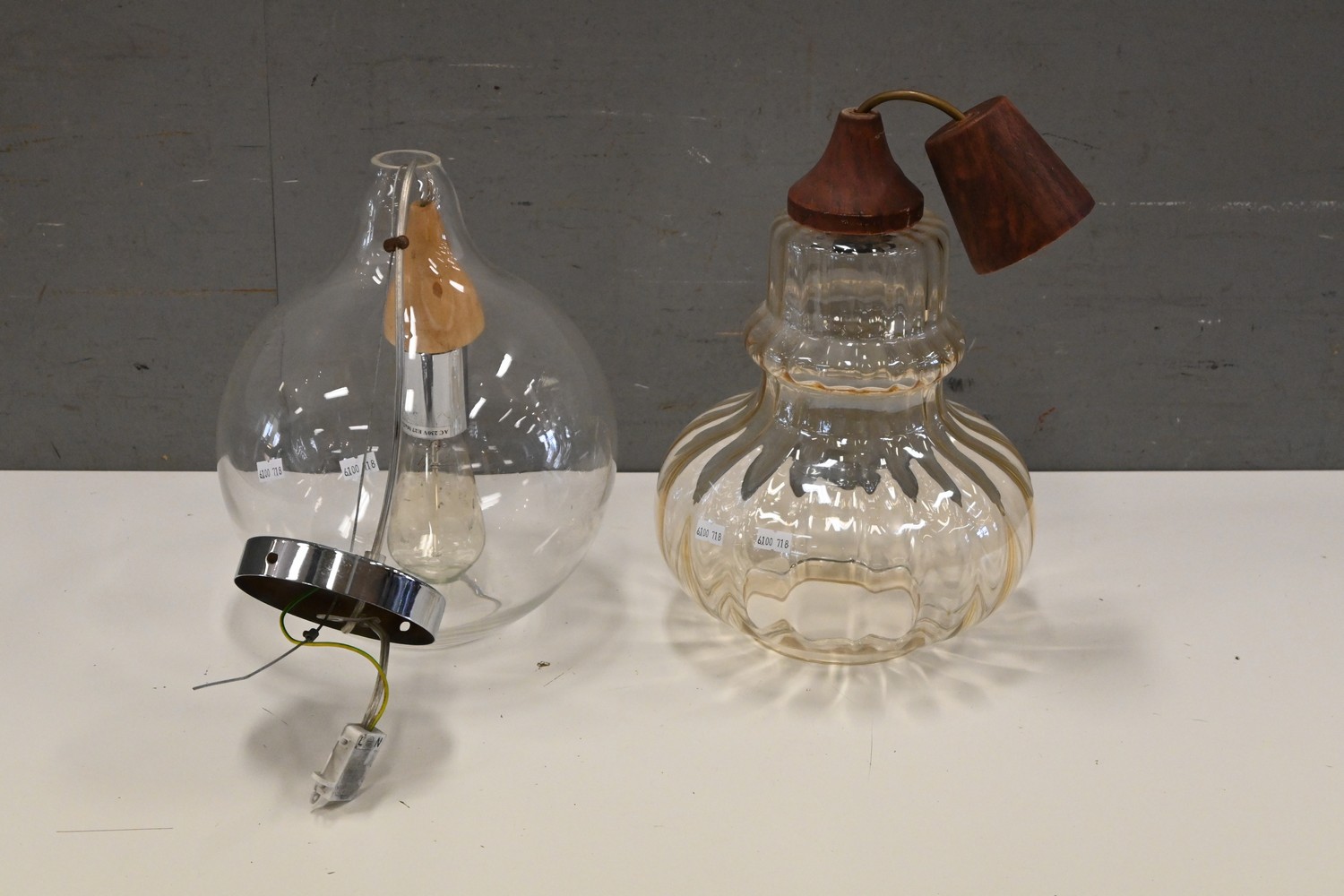 TWO GLASS HANGING SHADES (32H CM) (LEONARD JOEL DELIVERY SIZE: MEDIUM)