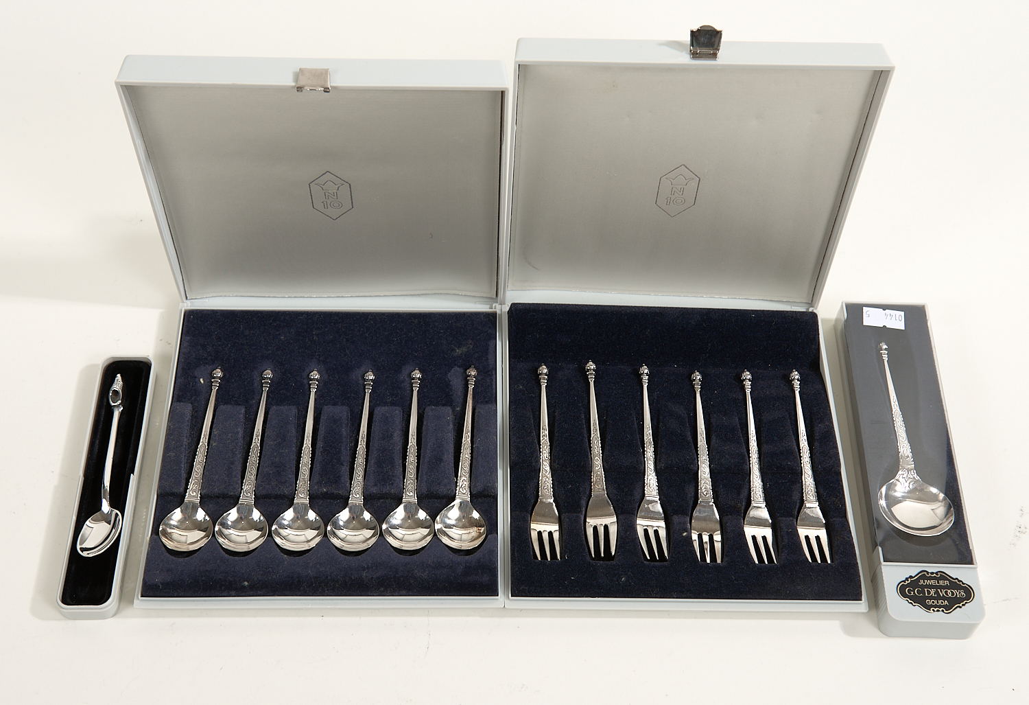 A GROUP OF DUTCH SILVER TEA SPOONS AND FORKS, LEONARD JOEL LOCAL DELIVERY SIZE: SMALL