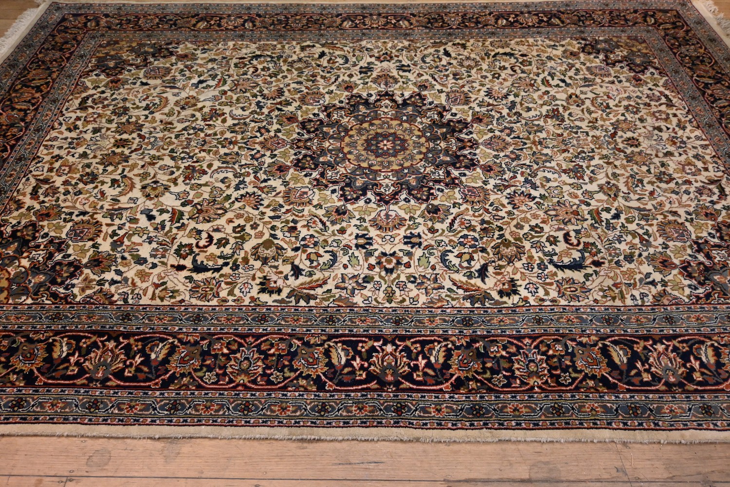 THE UTMOST BEAUTY AND ELEGANCE OF THE PERSIAN ISFAHAN SILK AND KORK WOOL CARPET. EXTREMELY FINELY HAND KNOTTED WITH APPROXIMATE 700,...
