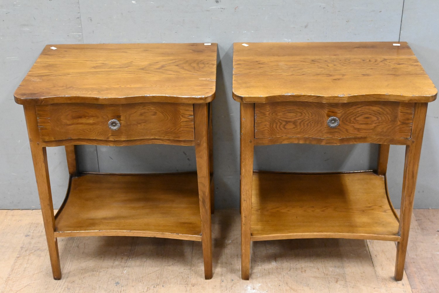 A PAIR OF SERPENTINE STYLE BEDSIDE TABLES ( 70H X 60W X 47D CM) ( A/F) (LEONARD JOEL DELIVERY SIZE: LARGE)