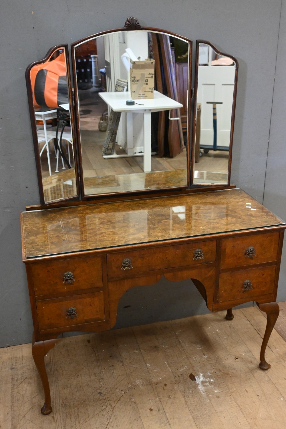 A WALNUT VENEERED MIRROR BACK DRESSER (A/F) (H157 X W108 X D49 CM) (PLEASE NOTE THIS HEAVY ITEM MUST BE REMOVED BY CARRIERS AT THE CUSTOMER'S EXPENSE. LEONARD JOEL STAFF CANNOT ASSIST CARRYING THIS ITEM) (X-LARGE ITEM)