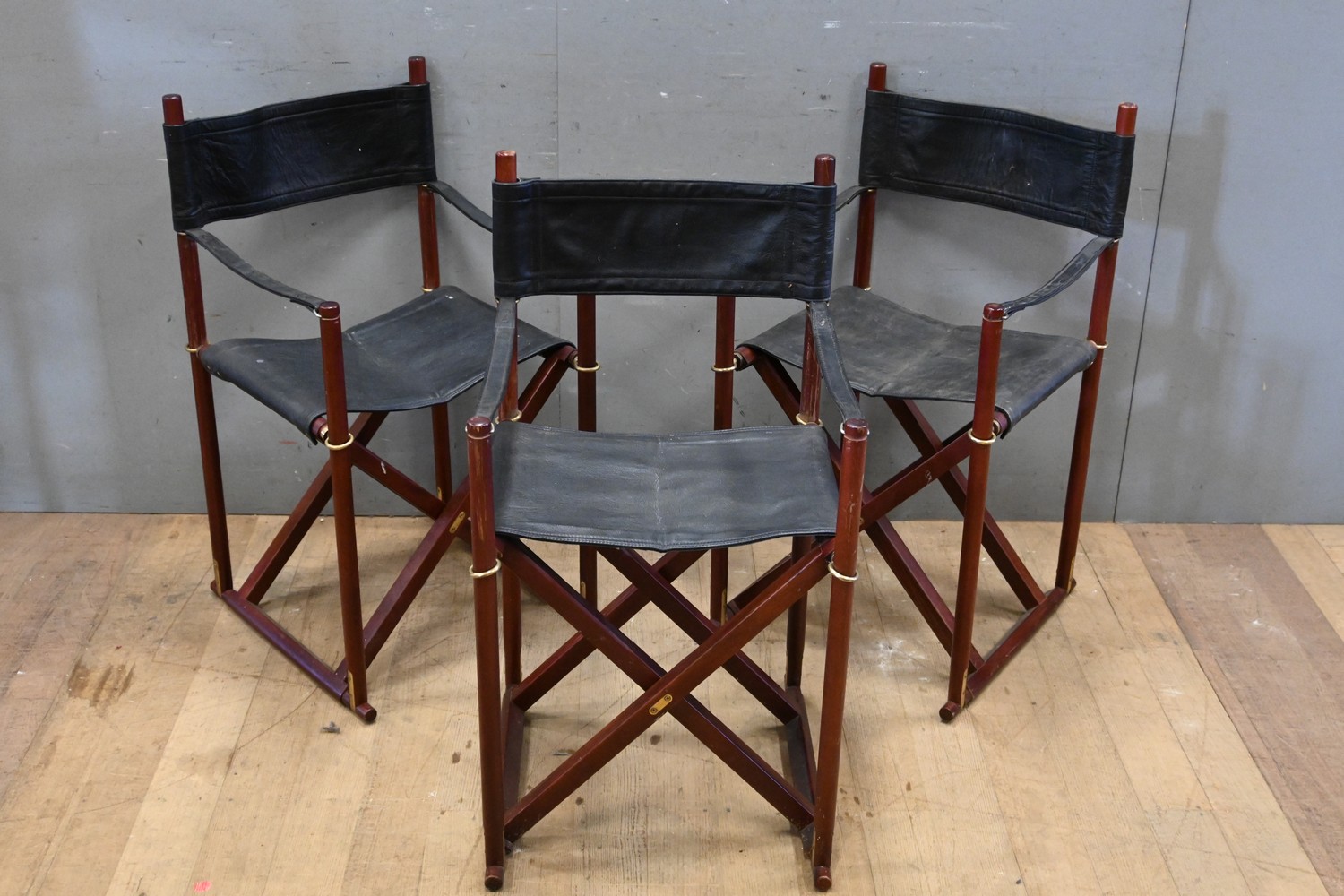A SET OF THREE BLACK LEATHER FOLDING DECK CHAIRS (A/F) (93H x 50W x 50D CM) (LEONARD JOEL DELIVERY SIZE: LARGE)